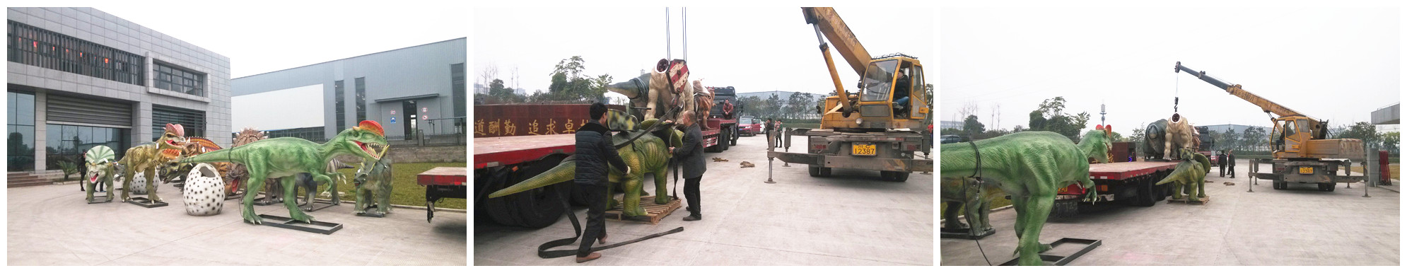 公司工程制作中心和藝思特恐龍彩燈科技有限公司,于元月18日-25日順利完成發(fā)往韓國(guó)、山東、成都的大型仿真恐龍、彩燈裝箱(車)工作。此次發(fā)往展出地 的機(jī)械仿真恐龍,共計(jì)9口箱(車),由于數(shù)量多,形體不規(guī)則,尺寸超長(zhǎng)(最大體量的恐龍身長(zhǎng)達(dá)16.2米、身高達(dá)9 米),為入箱作業(yè)帶來難度。加之氣溫驟降,天空飄起了密集的雪花,紛擾了現(xiàn)場(chǎng)作業(yè)視線,公司員工不畏嚴(yán)寒,配合物流公司箱(車)管員穿梭在場(chǎng)地上進(jìn)行搬運(yùn)和裝載,終于在元月25日下午圓滿完成發(fā)運(yùn)貨物的裝箱(車)工作。