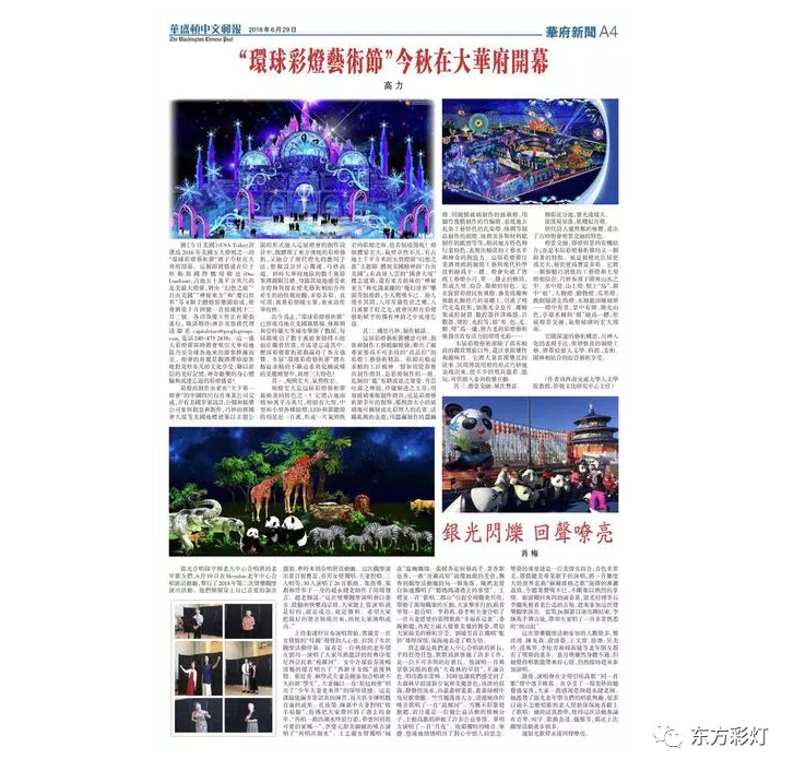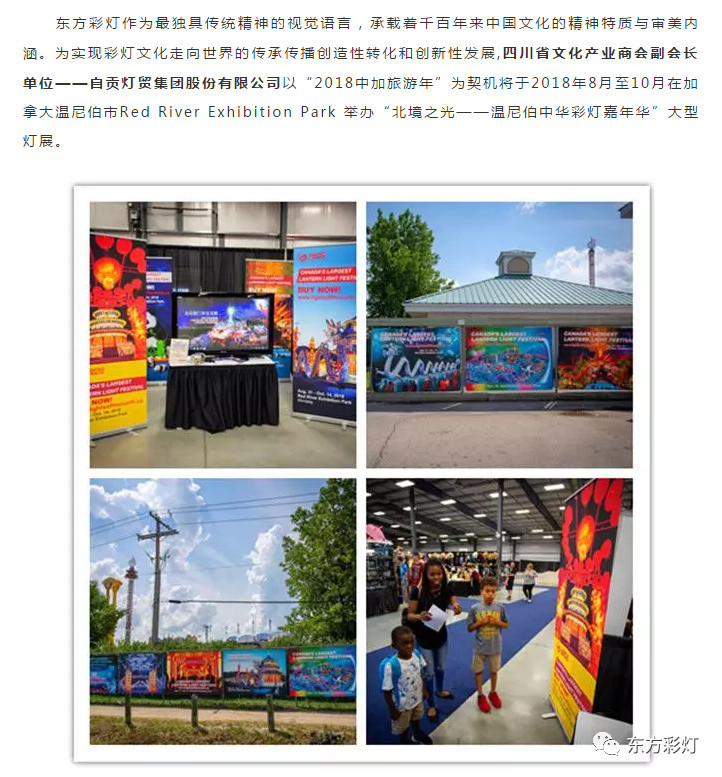 為推進(jìn)中國(guó)傳統(tǒng)彩燈文化的國(guó)際傳播能力,講好中國(guó)故事,展現(xiàn)真實(shí)、立體、全面的中國(guó)。自貢燈貿(mào)集團(tuán)股份有限公司“東方彩燈.點(diǎn)亮世界”全球巡展項(xiàng)目之--2018加拿大溫尼伯、溫哥華;美國(guó)華盛頓、圖森、菲尼克斯燈展已開(kāi)啟大幕。近日,四川省文化產(chǎn)業(yè)商會(huì)對(duì)我公司2018北美系列外展進(jìn)行了專題報(bào)道。