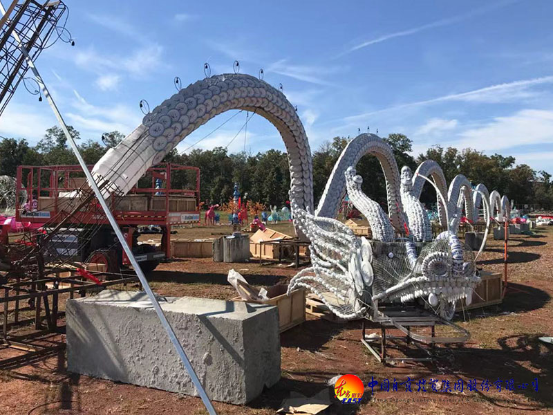 《中華瓷龍》燈組最具有文化代表性,龍是中華民族的圖騰,被賦予了強(qiáng)烈的漢民族人文氣息,而青花瓷又是中華陶瓷燒制工藝的致臻之作,代表著精湛的中國(guó)工藝智慧,兩者的碰撞交融,采用鋼骨架結(jié)構(gòu)與瓷器捆扎工藝技術(shù),頂部球泡變光和外光源的使用,在夜幕下,仙氣環(huán)繞,猶如神龍出海,威武挺拔,熠熠生輝。《中華瓷龍》從瓷器采購(gòu)、半成品、包裝、運(yùn)輸、再制作等每一個(gè)環(huán)節(jié)都要求精益求精,任何一個(gè)環(huán)節(jié)的失誤都會(huì)導(dǎo)致失敗,技術(shù)難度之大可想而知,同時(shí)耗用各種規(guī)格青花瓷器上萬(wàn)件,再加上幾十位工匠師傅的縝密做工,最終向大家呈現(xiàn)出一幅純手工制作的超大瓷龍畫(huà)卷。