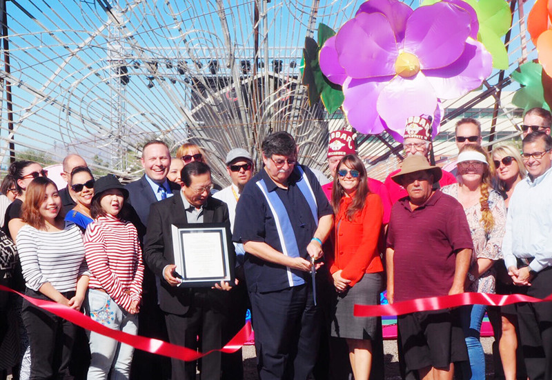 璀璨絢麗、獨(dú)具神韻的“2018世界之光圖森彩燈嘉年華”于11月7日在美國西部城市圖森華彩綻放。燈展受到當(dāng)?shù)卣蜕鐣鹘绲膹V泛關(guān)注。Pima郡行政長官、圖森市常務(wù)副市長、市議會議員、郡商會會長、市大都會商會董事長、市旅游局局長、市交通局局長等美方官員出席開幕式。