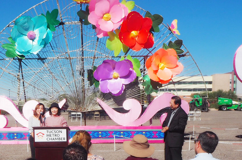 Pima郡行政長官Ramon Valadez,圖森市常務(wù)副市長Richard G. Fimbres,圖森市大都會商會董事長Amber Smith分別發(fā)表致辭,感謝本次燈展活動對中美文化交流作出的巨大貢獻(xiàn),希望促進(jìn)多元化的世界文化交流。他們在講話中贊嘆東方彩燈精妙絕倫的制燈工藝,稱“2018世界之光圖森彩燈嘉年華”用傳統(tǒng)、時(shí)尚、新鮮、現(xiàn)代的元素直面美國觀眾。當(dāng)?shù)仉娕_、電視臺、報(bào)紙等17家新聞媒體出席新聞發(fā)布會并對燈展進(jìn)行了相關(guān)報(bào)道。