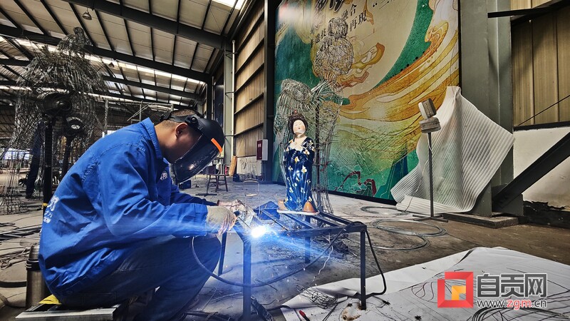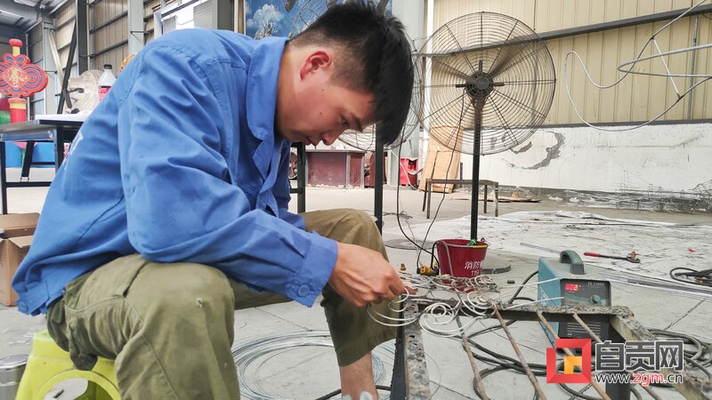 8月10日下午,記者走進自貢燈貿集團股份有限公司生產車間,專訪燈貿集團“唐風華韻”展品項目。4名彩燈造型師就像魔術師一般,讓手中冰冷鋼絲,變成了栩栩如生的造型。“從7月中旬以來,我們就開始進場施工,工作時并不覺得熱,常常引來一旁同事的關心?!痹?0多度的高溫下,38歲的彩燈造型師楊勝平因為太投入創(chuàng)作,衣服濕了又穿干,還全然不知。
