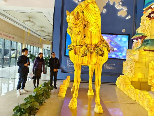 調(diào)研組一行參觀了東方彩燈(出口)基地,觀摩了燈貿(mào)集團(tuán)將自貢彩燈與唐三彩兩種非遺技藝的全新融合的“唐風(fēng)華韻”展品。集團(tuán)執(zhí)行總裁陶建軍向調(diào)研組一行介紹了燈貿(mào)集團(tuán)發(fā)展?fàn)顩r,以及公司全新彩燈產(chǎn)品。公司為促進(jìn)彩燈產(chǎn)業(yè)的創(chuàng)新性轉(zhuǎn)化和創(chuàng)造性發(fā)展,推出了文化+創(chuàng)意+科技全新彩燈產(chǎn)品,產(chǎn)品深度挖掘文化底蘊(yùn)動(dòng)線,變被動(dòng)式觀燈為主動(dòng)式沉浸、行浸觀燈,燈展的供給創(chuàng)新能力和消費(fèi)場(chǎng)景獲客能力得到了較大的提升。