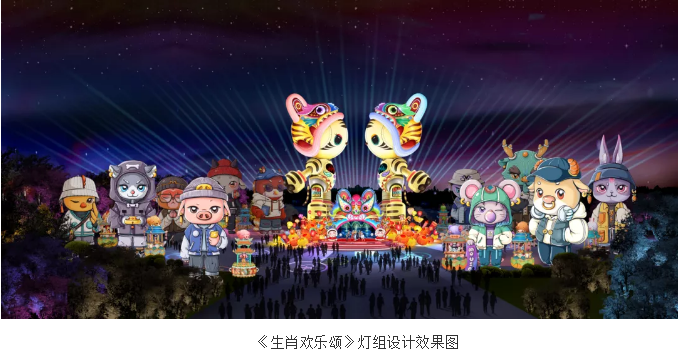 自貢燈貿(mào)集團承制的華僑城·第28屆自貢國際恐龍燈會大型場景沉浸式大型燈組《生肖歡樂頌》以“虎年歡歌千里錦 十二生肖賀新春”為主題,呈現(xiàn)十二生肖動物的現(xiàn)代版組合,子鼠丑牛,寅虎卯兔顛覆傳統(tǒng)生肖神話形象,以其炫目的賽博朋克感,獨一無二的國潮風(fēng)格,酷炫來襲。蘊含國潮新風(fēng)內(nèi)核社會圖景的《生肖歡樂頌》揭開了獨具特色的傳統(tǒng)生肖文化潮玩一角,必將成為本屆燈會的打卡勝地。