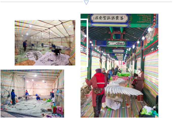 (施工現(xiàn)場,天寒地凍,東方彩燈工匠們干勁似火。)