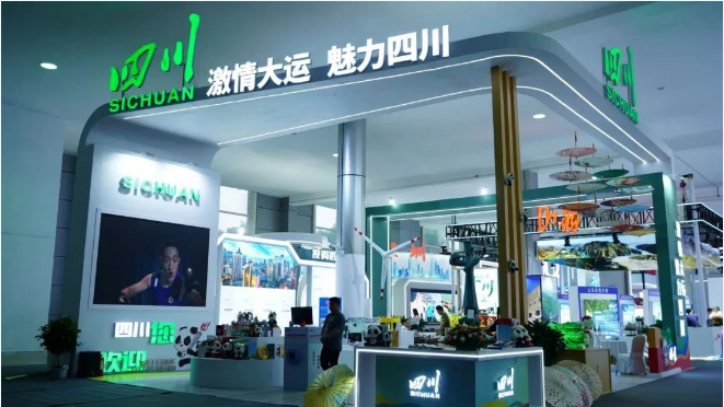 本屆青洽會(huì)中,四川館以“激情大運(yùn)·魅力四川”為主題,分設(shè)“激情大運(yùn)”“特色科技”“三星堆文創(chuàng)”“川貨出川”四大展區(qū)。自貢燈貿(mào)集團(tuán)股份有限公司的最新微縮彩燈工藝產(chǎn)品——“三星堆縱目面具人”亮相青洽會(huì),攜手其他特色文創(chuàng)展品共同生動(dòng)展現(xiàn)四川風(fēng)采。